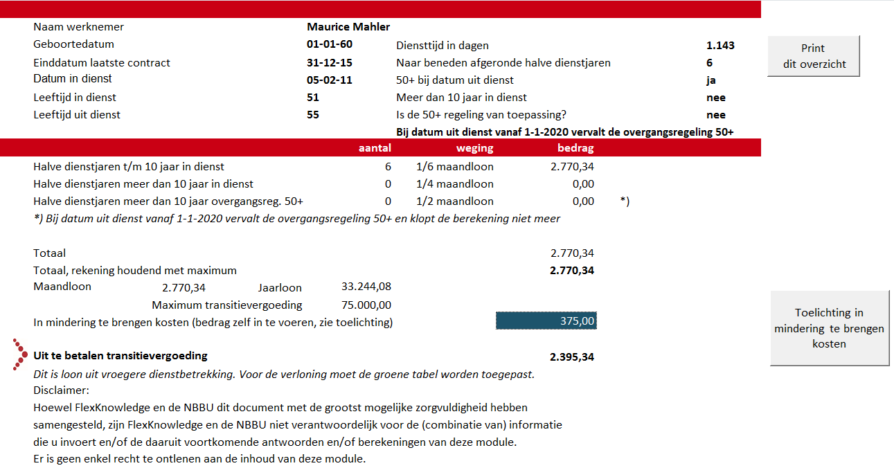 Hinke Wever 25 juni 2015 0 reacties Print Transitievergoeding tool – NBBU en FlexKnowledge| Besluit loonbegrip vergoeding aanzegtermijn en transitievergoeding | Regeling looncomponenten en arbeidsduur | De NBBU heeft samen met FlexKnowledge een tool ontwikkeld, waarmee flexbureaus de hoogte van de transitievergoeding kunnen bepalen voor hun flexkrachten. Voor de ontwikkeling van de tool heeft mr. Cor de Koeijer (NBBU) nauw samengewerkt met Henk Geurtsen (FlexKnowledge). ‘Er zijn nogal wat elementen om mee te nemen in de berekening…’ Cor de Koeijer Werkzaam bij de NBBU, brancheorganisatie voor bemiddelings- en uitzendondernemingen. Hij houdt zich bezig met de cao en juridische zaken, waaronder ook de implementatie van de Wet werk en zekerheid (WWZ). Lees meer Trainingen WWZ “Om onze leden voor te bereiden hebben wij dit jaar op verschillende plaatsen in het land diverse workshops verzorgd onder de naam ‘Cursus verdieping Wet werk en zekerheid’,” zegt De Koeijer. “Daarbij hebben we ook uitgebreid aandacht gegeven aan de complexiteit die de transitievergoeding met zich meebrengt, waaronder de berekening van de vergoeding. Op onze site geven we ook uitgebreid aandacht aan de WWZ.” Berekening vergoeding is complex “Hoe je het brutoloon bepaalt, op basis waarvan de vergoeding wordt berekend, dat is niet eenvoudig. De werkwijze die men moet volgen, is zeer complex verwoord in de wet: Besluit loonbegrip vergoeding aanzegtermijn en transitievergoeding Regeling looncomponenten en arbeidsduur Voor juristen is het al een puzzel, laat staan voor leken. Daarnaast gaat de wet uit van maandsalarissen en van de contractduur. Die werkwijze sluit aan bij ‘gewone’ werkgevers, maar niet bij de praktijk van uitzendwerkgevers. Uitzendorganisaties werken meestal niet met maandsalarissen. Zij rekenen vrijwel altijd met gewerkte weken en soms zelfs gewerkte dagen. Bovendien hebben ze te maken met een scala aan – veelal kortlopende – contracten en onderbrekingen voor hun uitzendkrachten. Het is dus niet verbazingwekkend dat veel uitzenders onze servicedesk al maandenlang benaderen met de vraag: hoe moet ik dit uitrekenen? Vaak zijn ze zelf al aan de slag gegaan met een Excelsheet en een rekensysteem en vragen vervolgens aan ons of hun berekening klopt. We beseften dat wij onze leden met een goed doordachte tool veel beter zouden kunnen ondersteunen. De ontwikkeling van deze tool bleek mogelijk in samenwerking met FlexKnowledge. De realisatie was een stevige uitdaging. Wij hebben er financieel in geparticipeerd en veel tijd in gestoken. De tool die we nu aan onze leden kunnen bieden, berekent de vergoeding voor contracten uit het verleden, voor lopende contracten en contracten die gepland zijn in de toekomst. Die informatie hebben uitzenders nodig om de hoogte van de transitievergoeding te bepalen en daarnaast om een realistische kostprijs te bepalen en hun tarieven vast te stellen. Vanuit de NBBU hebben wij de interpretatie van de wet op ons genomen en de uitgangspunten geformuleerd. Vervolgens is Henk Geurtsen, partner van FlexKnowledge, aan de slag gegaan met de inrichting van de tool. Die heb ik, samen met enkele collega’s, op allerlei manieren getest. Inmiddels zijn we overtuigd van de betrouwbaarheid van de uitkomsten en van de toepasbaarheid in zeer veel verschillende situaties binnen de flexbranche. De tool biedt handvatten om de onderhandelingen over kostprijzen goed onderlegd te kunnen voeren met inlenende organisaties.” Henk Geurtsen Partner van FlexKnowledge, zeer ervaren binnen de flexbranche. Hij heeft zich zowel in de rol van adviseur als (interim)manager gespecialiseerd in het optimaliseren van processen binnen de backoffice en het stroomlijnen van inhuurprocessen bij grote inleners, waaronder Managed Service Provider trajecten. Lees meer “Linksom of rechtsom krijgen flexorganisaties met de transitievergoeding te maken,” zegt Geurtsen. “Het heeft geen zin om flexkrachten regelmatig een half jaar werkloos te laten zijn om de transitievergoeding te vermijden. Het is verstandiger om met opdrachtgevers in gesprek te gaan en te wennen aan de nieuwe situatie. Opdrachtgevers realiseren zich niet altijd dat de kosten voor de uitlener natuurlijk blijven staan, als zij weigeren een opslag voor de transitievergoeding te betalen voor een flexkracht die een jaar voor hen werkt. Als de flexkracht vervolgens nog anderhalf jaar elders werkt, moet de uitlener de transitievergoeding betalen, zodra het dienstverband van deze flexkracht eindigt en de flexkracht de vergoeding vordert.” Hoe werkt de tool? “De tool geeft antwoord op de volgende vragen: Wordt voldaan aan de criteria voor de transitievergoeding? Wat is het exacte aantal maanden transitievergoeding waarop de flexkracht recht heeft? Een paar dagen korter of langer kan het verschil maken tussen wel of niet 1/6 maandsalaris extra. Hetzelfde geldt voor de onderbrekingen. De juiste berekening van onderbrekingsperiodes van meer dan 3 maanden voor 1 juli 2012 en meer dan 6 maanden vanaf 1 juli 2012 is cruciaal. Dit bepaalt of het aantal maanden transitievergoeding cumuleert of dat er weer vanaf nul wordt opgebouwd. Wat is de hoogte van het maandloon? Dit wordt bepaald vanuit het laatste contract voor beëindiging van het dienstverband op basis van de werkelijke verdiensten. Wat wordt uiteindelijk de hoogte van de transitievergoeding? Hierbij wordt rekening gehouden met de ‘gewone’ rekenmethode; en met de berekening wanneer een flexkracht een totaal dienstverband heeft (gehad) van meer dan 10 jaar; en of de 50+ regeling van toepassing is. De tool bespaart veel werk, geeft alle benodigde inzichten en zorgt voor de onderbouwing richting klanten en flexkrachten. De NBBU stelt de tool via de NBBU-website beschikbaar aan haar leden. FlexKnowledge stelt de tool beschikbaar voor andere gebruikers. De prijs bedraagt voor hen € 195,- per licentie. Bij afname van meer licenties geldt een staffelkorting. Per licentie kan een on