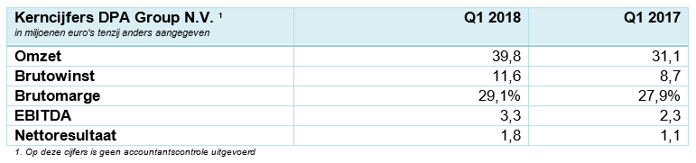 Hinke Wever 26 april 2018 0 reacties Print DPA Group realiseert omzet- en winstgroei in Q1 2018DPA Group N.V. boekt omzet- en winstgroei in eerste kwartaal 2018 Dat blijkt donderdag uit het persbericht bij de kwartaalcijfers: Hoofdpunten eerste kwartaal 2018: • Omzet: 39,8 miljoen euro (Q1 2017: 31,1 miljoen euro) • Brutowinst: 11,6 miljoen euro (Q1 2017: 8,7 miljoen euro) • Brutomarge: 29,1% van de omzet (Q1 2017: 27,9%) • EBITDA: 3,3 miljoen euro (Q1 2017: 2,3 miljoen euro) • Nettowinst: 1,8 miljoen euro (Q1 2017: 1,1 miljoen euro) Personeelsgroei en nieuw organisatiemodel Eric Winter, CEO van DPA: In 2017 heeft DPA geïnvesteerd in ruim 50 fte extra recruiters en accountmanagers om de sterke groei te kunnen faciliteren. Om de synergie in de organisatie te vergroten, hebben we een nieuw organisatiemodel ingericht. Hierbij zijn de business units samengebracht in de zeven clusters Finance & Control, Banking & Insurance, Integrated Business Services, IT & Engineering, Legal, Overheid en Participaties. Het is mooi om te zien dat onze investeringen zich in het eerste kwartaal van 2018 vertalen in omzet- en winstgroei.” Resultaten eerste kwartaal 2018 In het eerste kwartaal van 2018 steeg de omzet van DPA met 28,0% naar 39,8 miljoen euro (Q1 2017: 31,1 miljoen). De brutowinst bedraagt 11,6 miljoen euro (Q1 2017: 8,7 miljoen). De productiviteit nam toe en met name als gevolg daarvan steeg de brutomarge naar 29,1% (Q1 2017: 27,9%). De operationele kosten houden gelijke tred met de omzetstijging en bedragen 8,2 miljoen euro (Q1 2017: 6,4 miljoen). Hiervoor geldt dat DPA onverminderd investeert in werving, selectie en opleiding van eigen professionals. De winst voor aftrek van rente, belastingen, afschrijvingen en amortisatie van goodwill (EBITDA) bedraagt 3,3 miljoen euro (Q1 2017: 2,3 miljoen). Deze groei is vrijwel geheel op autonome basis gerealiseerd. DPA behaalde een nettowinst van 1,8 miljoen euro (Q1 2017: 1,1 miljoen). Autonome groei Op autonome basis steeg de omzet met 21% ten opzichte van het eerste kwartaal van 2017. Het gemiddelde aantal eigen professionals in loondienst (fte’s) groeide met 32%: van 1.075 naar 1.422. Autonoom steeg het aantal fte’s met 25%. Door de groei van het aantal medewerkers in combinatie met een hogere inzetbaarheid is met eigen professionals 31% meer omzet behaald dan in het eerste kwartaal van 2017; autonoom bedraagt de stijging 25%. ZZP’ers 10% van de bij opdrachtgevers gewerkte uren is ingevuld met zelfstandige professionals (Q1 2017: 11%). De met zelfstandige professionals gerealiseerde omzet steeg met 7%. Op autonome basis stegen de operationele kosten met 18%. Per 31 maart 2018 was de verhouding directe-indirecte medewerkers 6,5 (31 maart 2017: 6,2). Bron: DPA.nl, 26 april 2018 bedrijfsresultaten, DPA Group, Q1 Print Over de auteur Over Hinke Wever Hinke Wever is een creatieve verbinder van werk- en levensterreinen. Ze was als redacteur vanaf de start betrokken bij FlexNieuws. Bekijk alle berichten van Hinke Wever