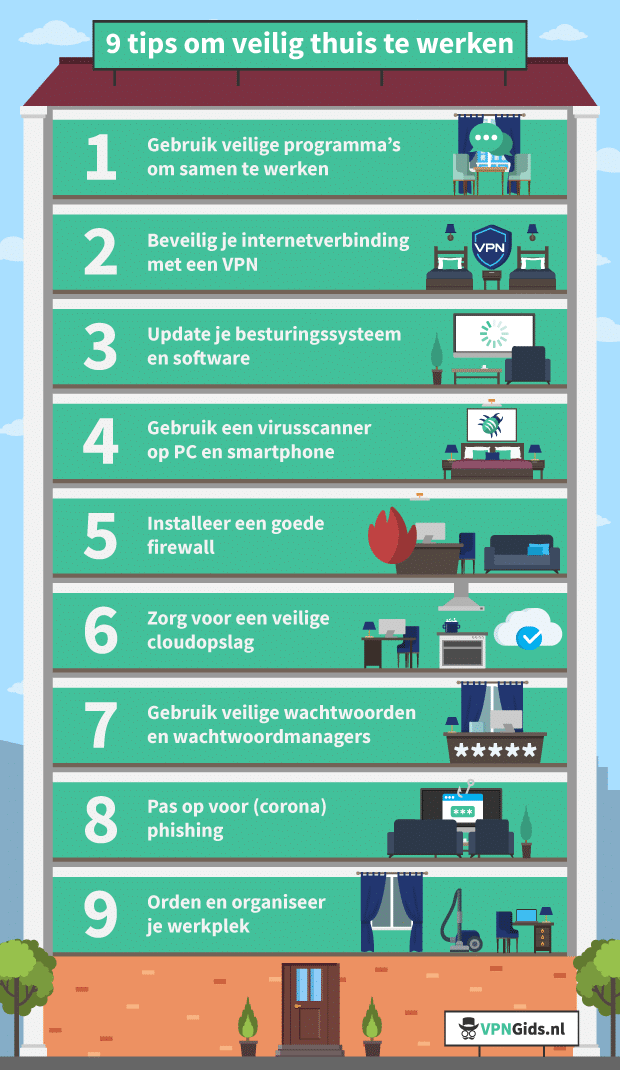 Hinke Wever 10 april 2020 0 reacties Print 1 op de 6 thuiswerkers neemt onvoldoende beveiligingsmaatregelenVan alle Nederlanders die nu thuiswerken, neemt één op de zes niet de juiste beveiligingsmaatregelen. Niet ieder apparaat dat thuiswerkers zakelijk gebruiken beschikt bijvoorbeeld over een virusscanner of recente software-updates. Dit en meer blijkt uit een enquête van VPNGids.nl. 17 procent van alle thuiswerkenden geeft aan dat niet op alle gebruikte apparaten een virusscanner geïnstalleerd is. Ook updates voert niet iedereen goed uit: 14 procent van alle Nederlanders die vanuit huis werken, stelt updates uit. Het nalaten van deze maatregelen zorgt voor mogelijke lekken waar hackers gebruik van kunnen maken. De meeste (grote) bedrijven beschikken over een extra veilig netwerk met goed beveiligde computersystemen. Veel bedrijven beschikken over een IT-afdeling die de systemen continu controleert en beveiligd houdt. Uit een enquête die wij hebben uitgezet blijkt dat respondenten vaak niet de juiste veiligheidsmaatregelen treffen. Bevindingen enquête – Meer dan de helft van de respondenten geeft aan geen wachtwoordmanager te gebruiken. – Bijna 1 op de 5 respondenten stelt updates uit of houdt zich helemaal niet bezig met het updaten van besturingssystemen, apps en software – 17 procent van de respondenten gebruikt niet op alle relevante apparaten een virusscanner, terwijl nog eens 16 procent niet weet of zij een virusscanner gebruiken. – Bekendheid met het fenomeen VPN blijkt nog achter te blijven. 29 procent van de respondenten zegt geen VPN-verbinding te gebruiken op apparaten die voor het werk worden gebruikt. En 34 procent zegt niet te weten of zij een VPN-verbinding gebruiken op apparaten die zij voor werk gebruiken. Veiliger werken met wachtwoordmanager minder gebruikelijk Wie extra veilig thuis wil werken, doet er goed aan zijn wachtwoorden te verzamelen in een wachtwoordmanager. Dit blijkt echter nog lang niet gebruikelijk: minder dan één op de drie thuiswerkers gebruikt een wachtwoordmanager. Bron: VPNgids.nl, 8 april 2020 Lees ook Blog Edwin Stokvis over veilig digitaal samenwerken in corona tijden. digitalisering, veilig werken, VPN Print Over de auteur Over Hinke Wever Hinke Wever is een creatieve verbinder van werk- en levensterreinen. Ze was als redacteur vanaf de start betrokken bij FlexNieuws. Bekijk alle berichten van Hinke Wever