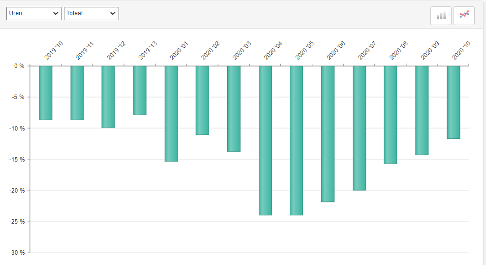 Hinke Wever 27 oktober 2020 0 reacties Print ABU week 37-40 opnieuw herstel in uitzendcijfersDe ABU heeft de marktontwikkelingen in uitzenden in periode 10 2020 (week 37 – 40) bekend gemaakt. In periode 10, van 7 september tot en met 4 oktober, daalde het aantal uren met 12% en de omzet daalde met 7% in vergelijking met dezelfde periode vorig jaar. Omdat deze periode evenveel werkbare dagen telde als in dezelfde periode vorig jaar, is er geen correctie toegepast. De ontwikkelingen per sector zijn als volgt: Administratieve sector: Het aantal uren daalde met 15% en de omzet daalde met 10% ten opzichte van dezelfde periode vorig jaar. Industriële sector: Het aantal uren daalde met 7% en de omzet daalde met 2% ten opzichte van dezelfde periode vorig jaar. Technische sector: Het aantal uren daalde met 29% en de omzet daalde met 20% in vergelijking met dezelfde periode vorig jaar. Hoe is de ontwikkeling in korte en langdurende contracten? De cijfers laten in periode 10 2020 in vergelijking met dezelfde periode in 2019 over het algemeen een flinke daling zien in uren voor langdurige contracten (fase B/C) en veelal een stijging voor kortlopende contracten (fase A). Hetzelfde geldt voor de omzet. Het beeld verschilt wel per sector. In de industrie zien we opnieuw een flinke plus in de fase A-contracten. Administratief noteert wederom een toename in fase A, terwijl Techniek juist te maken heeft met een afname. De daling in B/C contracten is vrijwel gelijk in alle sectoren. Bron: ABU, 27 oktober 2020 Zie ook ABU marktontwikkelingen week 33-36, 2020 ABU, marktontwikkelingen, Uitzenden, uitzendomzet, Uitzenduren Print Over de auteur Over Hinke Wever Hinke Wever is een creatieve verbinder van werk- en levensterreinen. Ze was als redacteur vanaf de start betrokken bij FlexNieuws. Bekijk alle berichten van Hinke Wever