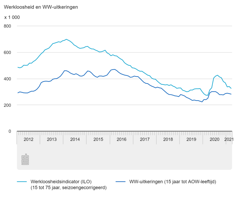 Hinke Wever 22 april 2021 0 reacties Print Werkloosheid daalt naar 3,5% in maart 2021In maart 2021 waren 326 duizend mensen werkloos; 3,5% van de beroepsbevolking. Gemiddeld over de afgelopen drie maanden daalde het aantal werklozen met 14 duizend per maand. In dezelfde periode kwamen er gemiddeld per maand 8 duizend mensen met betaald werk bij. In maart bestond de werkzame beroepsbevolking uit 9,0 miljoen mensen. Dat meldt het CBS op basis van nieuwe cijfers. UWV registreerde eind maart 282 duizend lopende WW-uitkeringen. Tussen maart en augustus 2020 steeg de werkloosheid van 2,9 procent naar 4,6 procent. Daarna is dit percentage vrijwel voortdurend gedaald. Bron: CBS, 22 april 2021 Lees ook CPB verwacht minder snelle stijging werkloosheid Werkloosheid blijft 3,6 procent in februari 2021 beroepsbevolking, CBS, UWV, werkloosheid, WW Print Over de auteur Over Hinke Wever Hinke Wever is een creatieve verbinder van werk- en levensterreinen. Ze was als redacteur vanaf de start betrokken bij FlexNieuws. Bekijk alle berichten van Hinke Wever