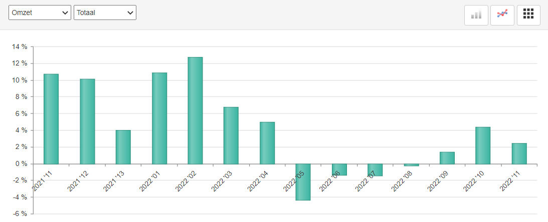ABU week 41-44: uitzenduren dalen 6 procent, omzet daalt 2 procent Geplaatst 29 november 2022 door Redactie FlexNieuws De ABU heeft de marktmonitor bekend gemaakt met de uren en omzet uitzendbranche in periode 11 2022 (week 41 – 44) In periode 11, van 10 oktober tot en met 6 november, daalde het aantal uren met 6% en steeg de omzet met 2% in vergelijking met dezelfde periode vorig jaar. Omdat deze periode evenveel werkbare dagen telde als in dezelfde periode vorig jaar, is er geen correctie toegepast. De ontwikkelingen per sector zijn als volgt: Administratieve sector: Het aantal uren daalde met 14% en de omzet is gedaald met 1% ten opzichte van dezelfde periode vorig jaar. Industriële sector: Het aantal uren daalde met 2% en de omzet steeg met 5% ten opzichte van dezelfde periode vorig jaar. Technische sector: Het aantal uren daalde met 9% en de omzet daalde met 1% in vergelijking met dezelfde periode vorig jaar. Bron: ABU, 29 november 2022 Lees ook ABU week 37-40: uitzenduren dalen 6%, uitzendomzet stijgt 4% Geplaatst in Flexdata | Tags ABU, marktmonitor, uitzendomzet, Uitzenduren | Reacties uitgeschakeld voor ABU week 41-44: uitzenduren dalen 6 procent, omzet daalt 2 procent