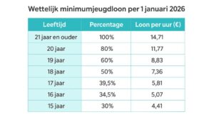 Redactie FlexNieuws 7 oktober 2025 0 reacties Print Minimumuurloon stijgt in 2026 naar €14,71Per 1 januari 2026 stijgt het wettelijk minimumloon naar €14,71 per uur voor werknemers van 21 jaar en ouder. Dat is een stijging van 2,15 procent. De jeugdlonen stijgen mee, maar de geplande extra verhoging van het minimumjeugdloon gaat niet eerder dan in 2027 in. Het wettelijk minimumloon stijgt per 1 januari 2026 naar €14,71 bruto per uur voor werknemers van 21 jaar en ouder. Dat meldt minister Mariëlle Paul (SZW) in een kamerbrief over de indexatie van het minimumloon. Dit is een stijging van 2,15 procent ten opzichte van de tweede helft van 2025, toen het minimumloon nog € 14,40 bedroeg. Het bijbehorende referentie-maandloon wordt vastgesteld op €2.294,40 bruto per maand. Wettelijke indexatie De verhoging volgt de wettelijke indexatieregeling uit de Wet minimumloon en minimumvakantiebijslag (WML), die het minimumloon koppelt aan de contractloonontwikkeling in Nederland en waarbij rekening is gehouden met een zogenoemd naijleffect van de loonontwikkeling in voorgaande jaren. Afwijking van de hoofdregel alleen mogelijk is bij ‘bovenmatige loonontwikkeling’ of een sterke groei van het aantal uitkeringsgerechtigden. Volgens de huidige ramingen is dat niet aan de orde: de lonen stijgen sneller dan de prijzen, de werkloosheid is laag, en de i/a-ratio (verhouding tussen inactieven en actieven) vertoont een lichte stijging door de vergrijzing. Lees ook: Per 1 juli 2025 stijgt het wettelijk minimumuurloon naar €14,40 Minimumjeugdloon Voor jongeren tot 21 jaar gelden aangepaste minimumjeugdlonen, die procentueel zijn afgeleid van het minimumloon voor volwassenen. In juni werd in de Tweede Kamer een motie van Volt aangenomen die pleit voor een grotere verhoging van het minimumjeugdloon vanaf 2026 in plaats van in 2027. Daarbij zou een twintigjarige minstens 90 procent van het volwassen minimumloon moeten verdienen in plaats van de huidige tachtig procent. Nu verdienen jongeren van 18 jaar maar de helft van het minimumloon voor volwassenen (vanaf 21 jaar). Het demissionaire kabinet kan zich echter niet vinden in de voorgestelde financiering en wil deze verhoging niet eerder doorvoeren. Demissionair minister Mona Keijzer houdt vast aan het kabinetsvoorstel om pas per januari 2027 een beperkte verhoging van het minimumjeugdloon door te voeren. Voor werknemers van 18, 19 of 20 jaar oud in een beroepsbegeleidende leerweg (bbl) gelden afwijkende staffels, beginnend bij €6,69 per uur voor 19-jarigen tot €9,05 per uur voor 20-jarigen. Leerlingen van 15 tot en met 17 jaar en vanaf 21 jaar vallen onder de reguliere staffels. Lees ook: Kamer wil minimumjeugdloon al in 2026 verhogen minimumjeugdloon, minimumloon Print Over de auteur Over Redactie FlexNieuws Redactie van Flexnieuws - interviews, artikelen, aankondigingen en persberichten. Bekijk alle berichten van Redactie FlexNieuws
